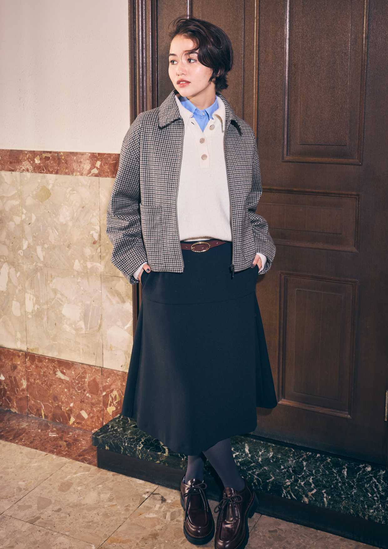 ガンクラブチェックとへリンボン柄をジャージジャガード素材で表現した