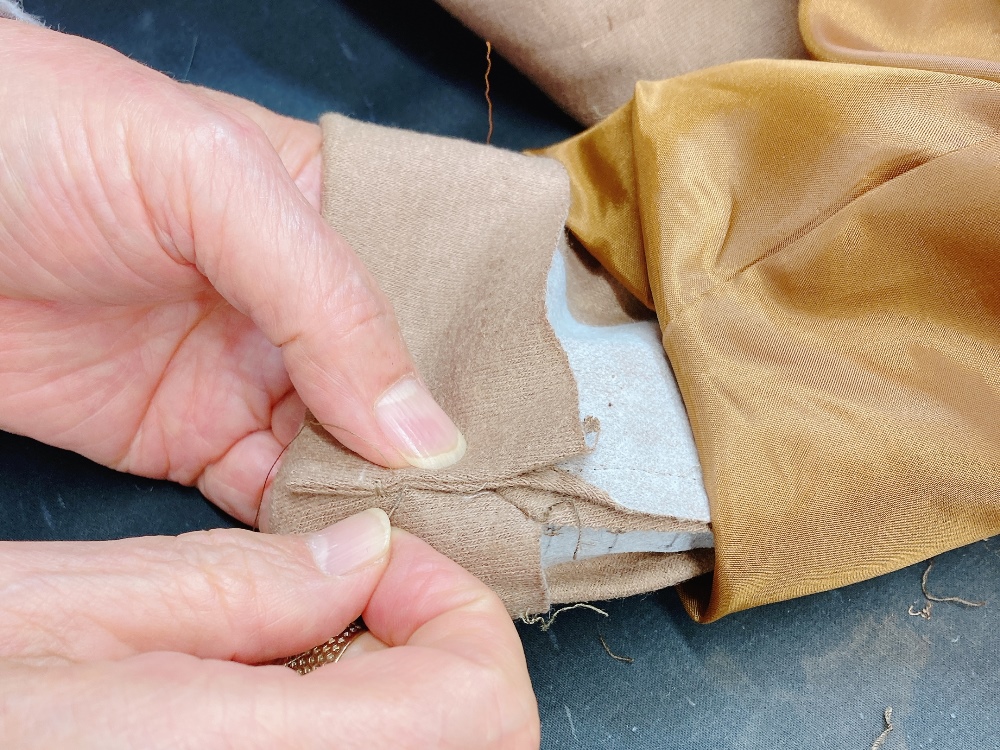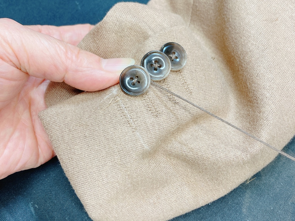 ➪袖丈をカットしたあと、元のデザイン通りに作り直していきます。