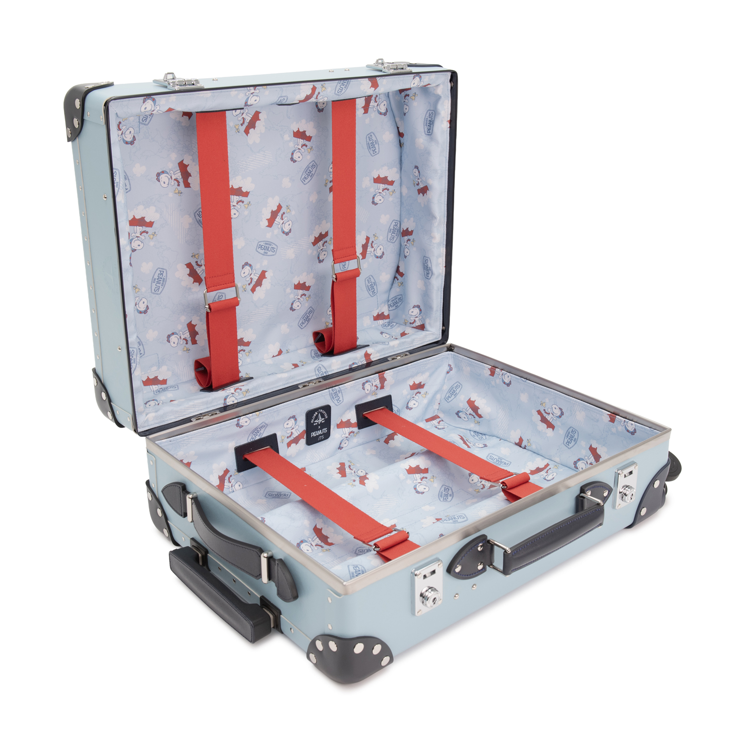 内装には、スヌーピー(フライング・エース)とウッドストックが世界の上空を飛び交う姿を描いた特別仕様のプリントライニングを採用。二人が繰り広げる旅の物語が、スーツケースを開くたびに広がります。