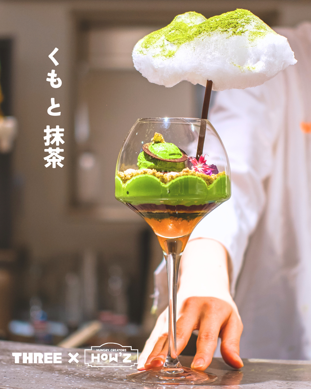 くもに見立てたわたあめは抹茶シロップで溶かしてお召し上がりください☁️