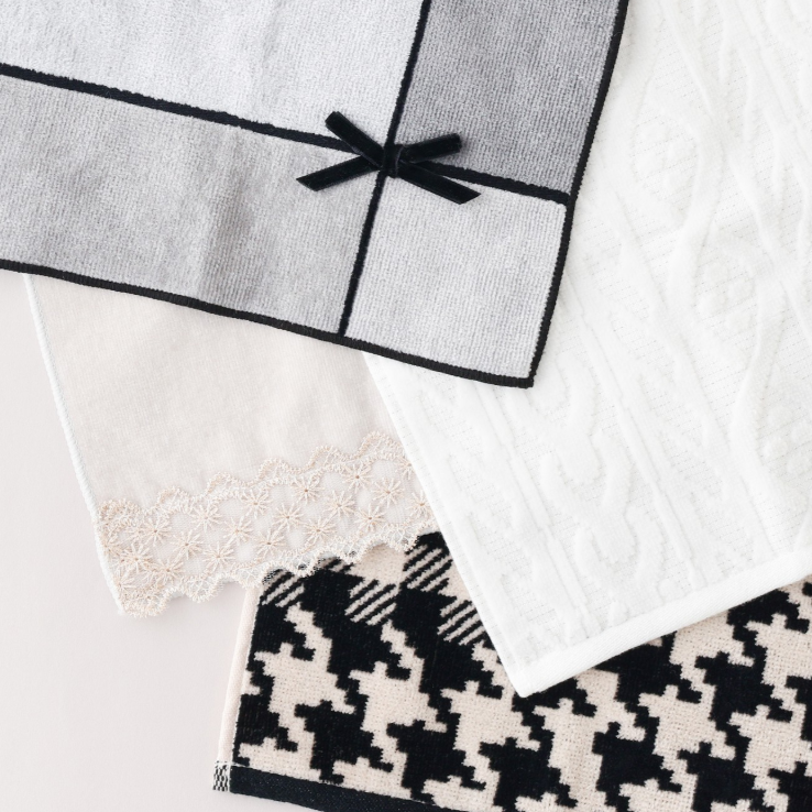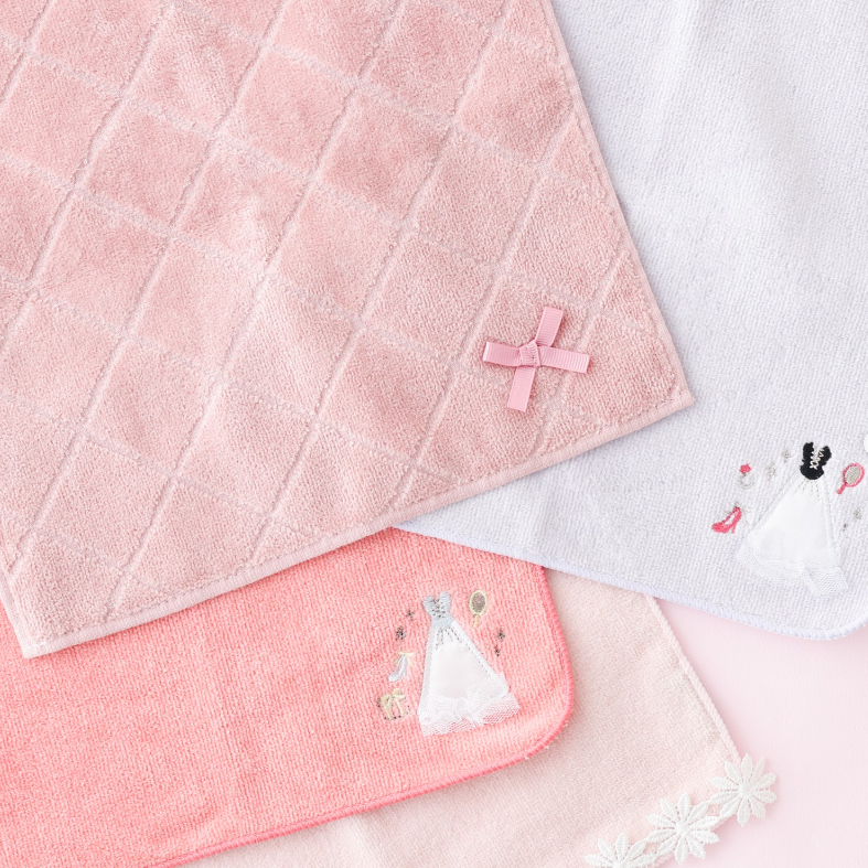 レースや花柄などエレガントなデザインから、キャッチーなアニマルモチーフ、普段使いにぴったりのシンプルなロゴ付きのものまで、さまざまなデザインのハンカチシリーズです!