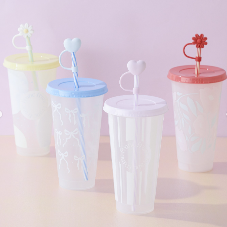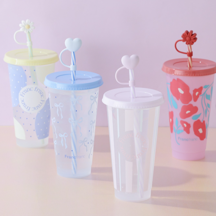 ストローには、ハートやお花の形をしたキュートなキャップがついているのも嬉しいポイント♥️