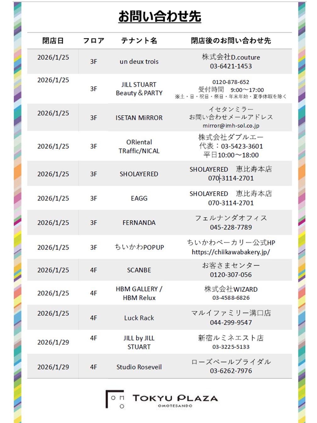 今後とも東急プラザをご愛顧賜りますよう、よろしくお願い申し上げます。