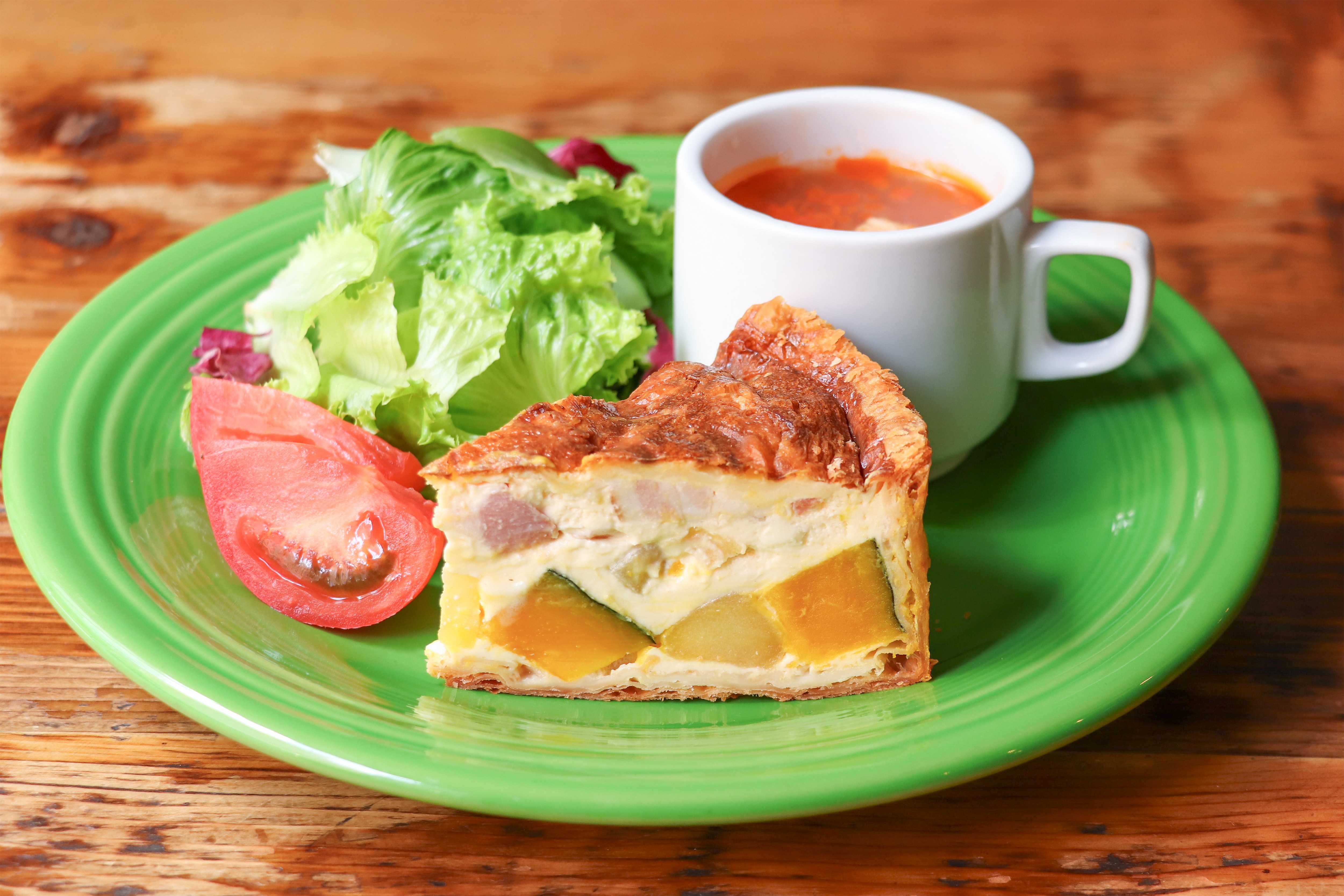 平日11:00~16:00 この時間帯だけのお得なりんごのキッシュとドリンクのセットが数量限定で販売中