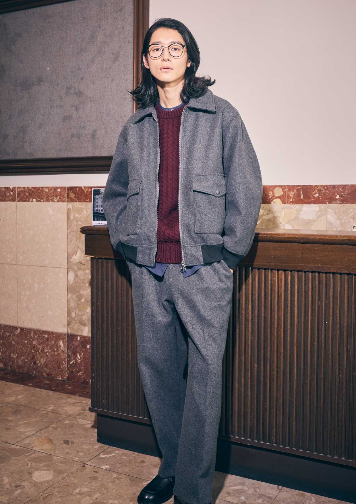 ガンクラブチェックとへリンボン柄をジャージジャガード素材で表現した
