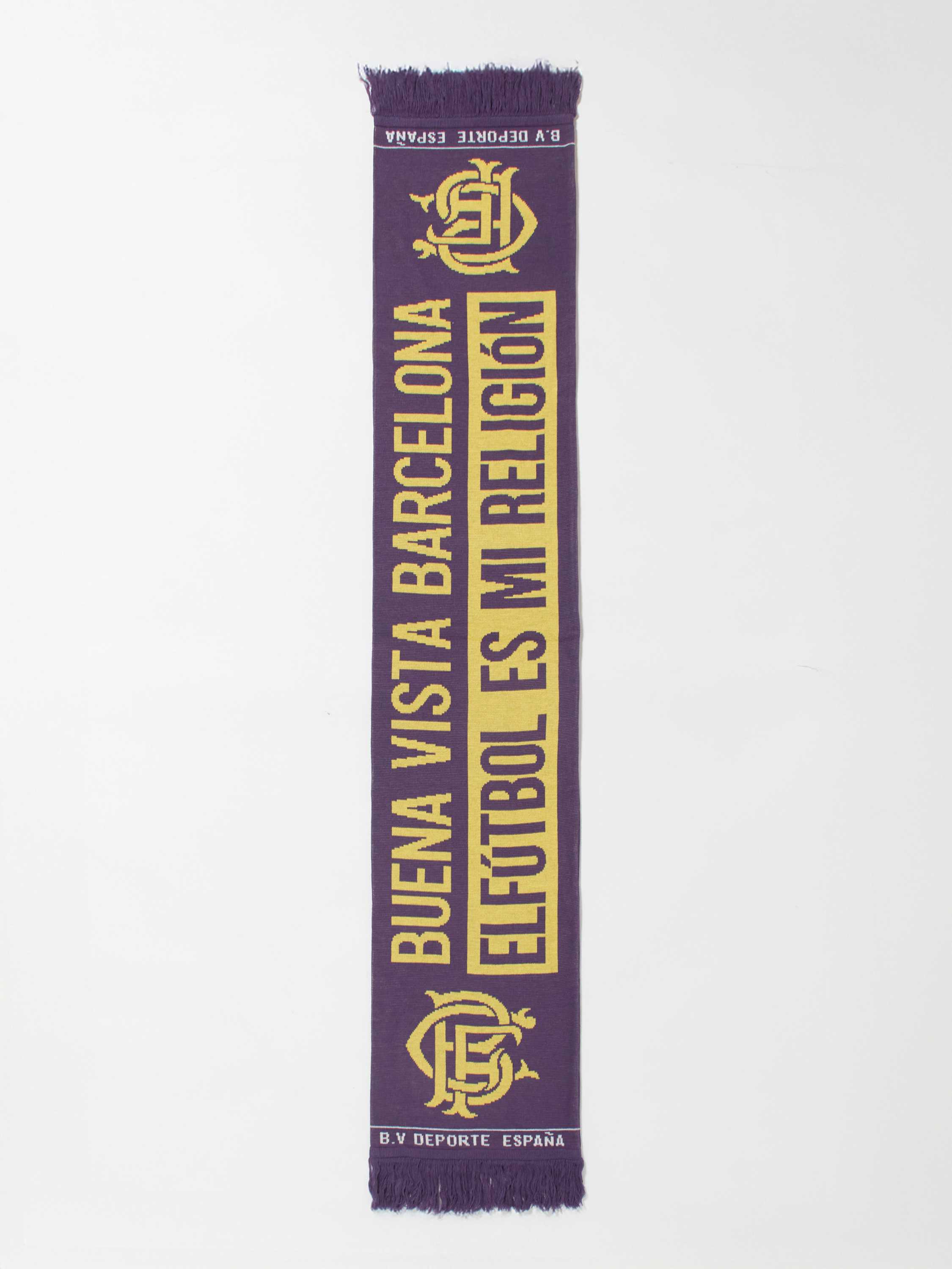 BUENA VISTA footboall clubのロゴと応援に込めたメッセージが編み込まれたフットボールマフラー。