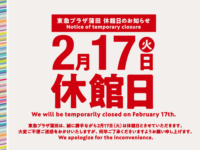 平素より東急プラザ蒲田をご利用いただき、誠にありがとうございます。