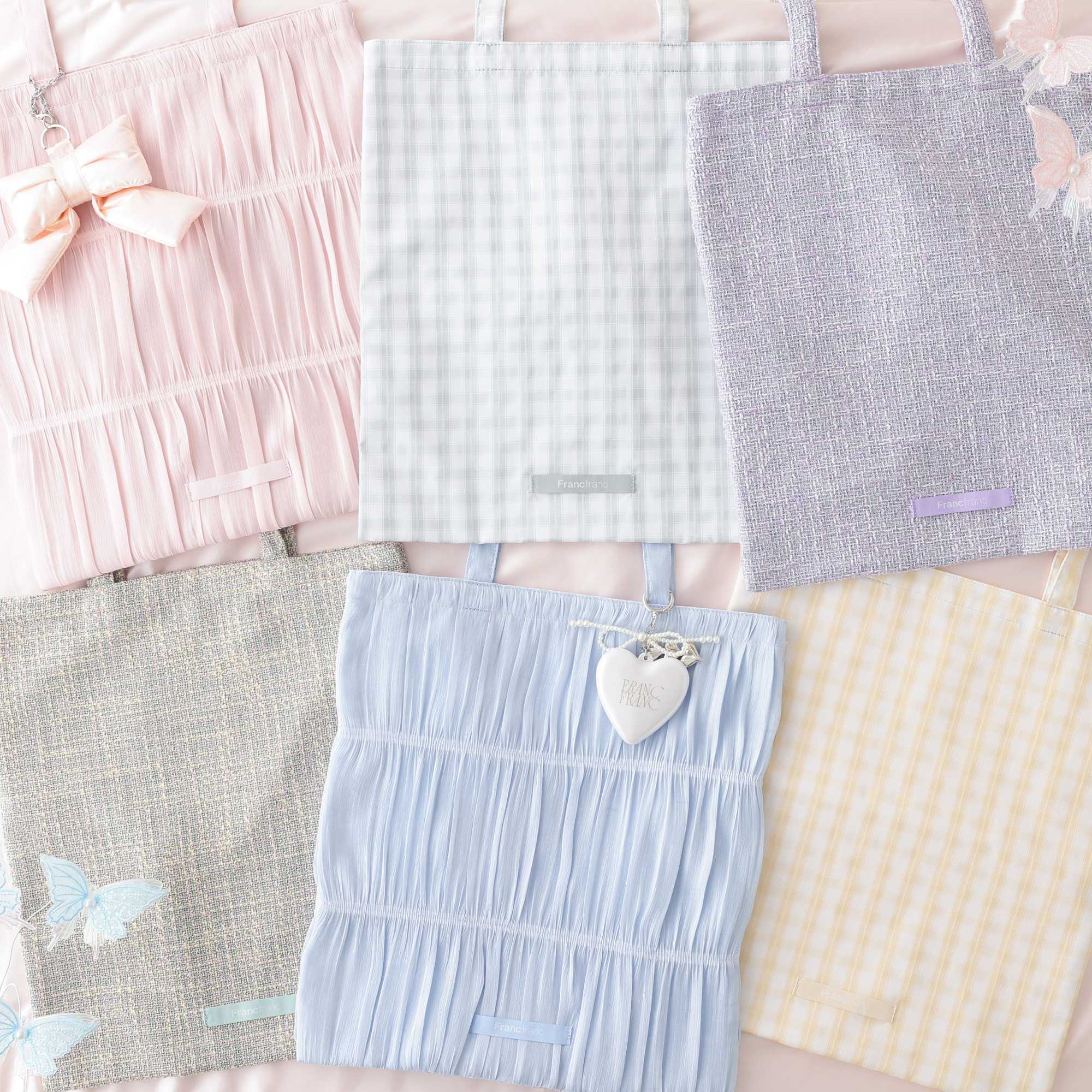 オーガンジーやツイード、ギンガムチェックなど春らしい生地とカラーを使用したトートバッグです♥️⭐