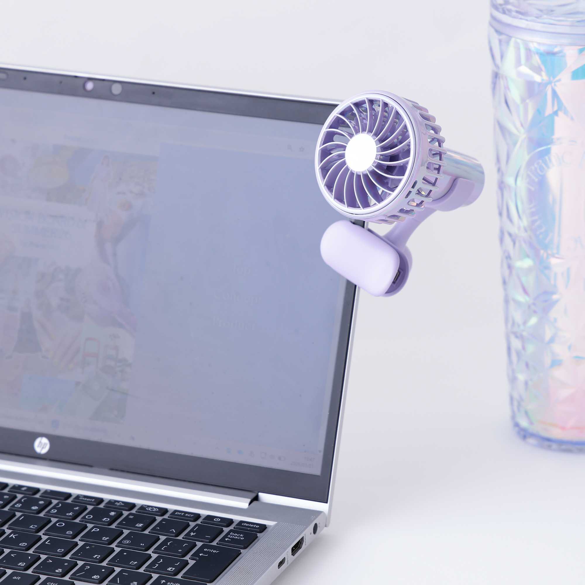付属のクリップで日傘やバッグなど、さまざまな場所に取り付けたり、付属のネックストラップをつけて首から提げるとハンズフリーで使うことができます♪