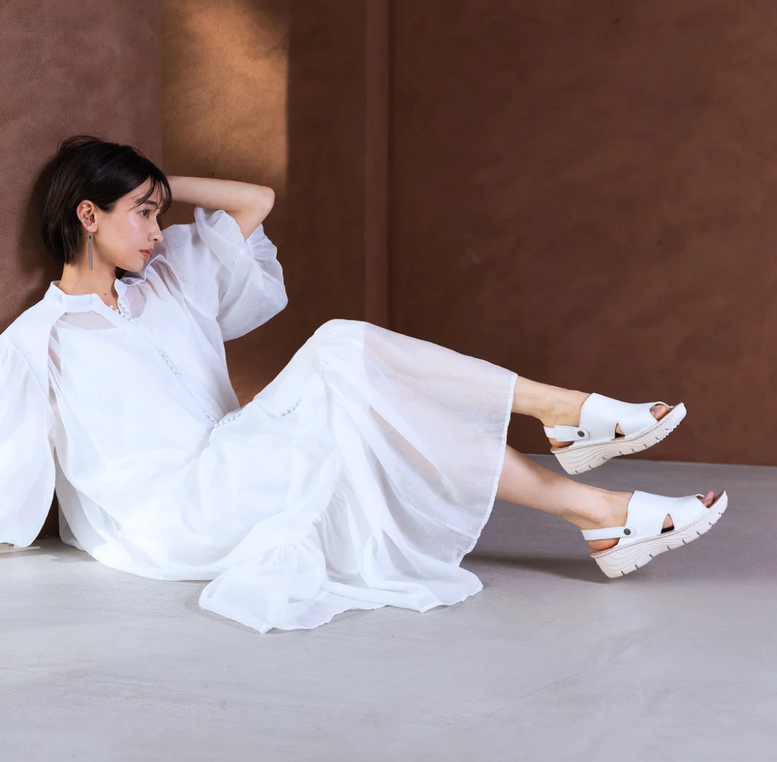 NEW 更新日:2026.04.20 enchanted 03-6715-7230 本革2WAY 夏の定番サンダル 旬な厚底サンダルを大人も履きやすいナチュラル×モードなデザインにアレンジ。 踵にはベルトがついていて、前に倒せばカバーサンダルとして、かかと側にひっけかればバックストラップサンダルとして履くことができます。 ソールが軽く、ふわっ としたクッションも装備、機能面も充実。 本革を使っているので足当たりもソフト。 サボのようなナチュラルな雰囲気があり、夏のコーディネートにも使い勝手がよさそうです。 X この店舗のショップニュース 晴雨兼用Vカットスクエアトゥーパンプス