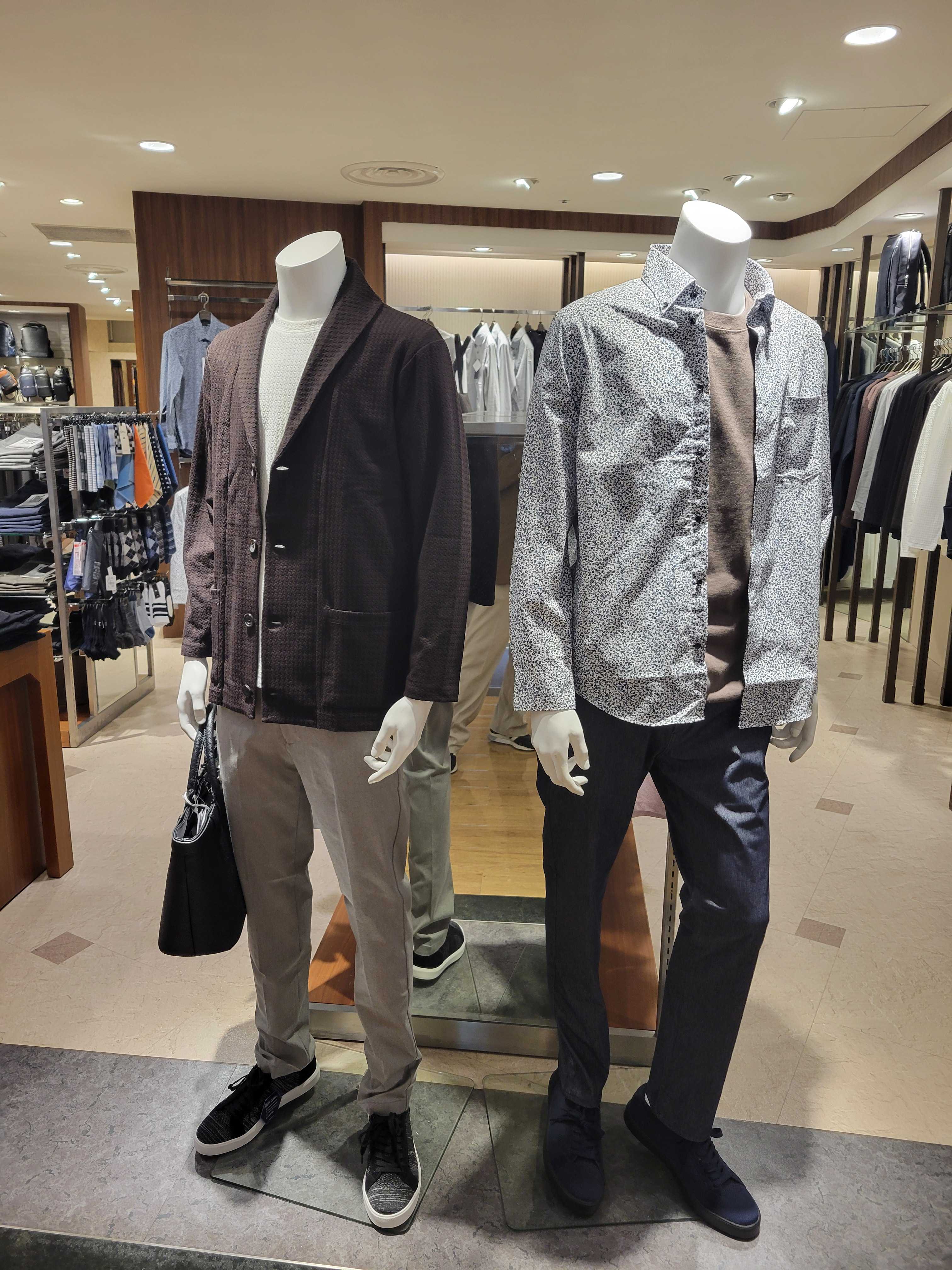 店頭では新作を用いたトータルコーデマネキンを展示しています。着た際のサイズ感や、コーディネートの参考などにご利用ください