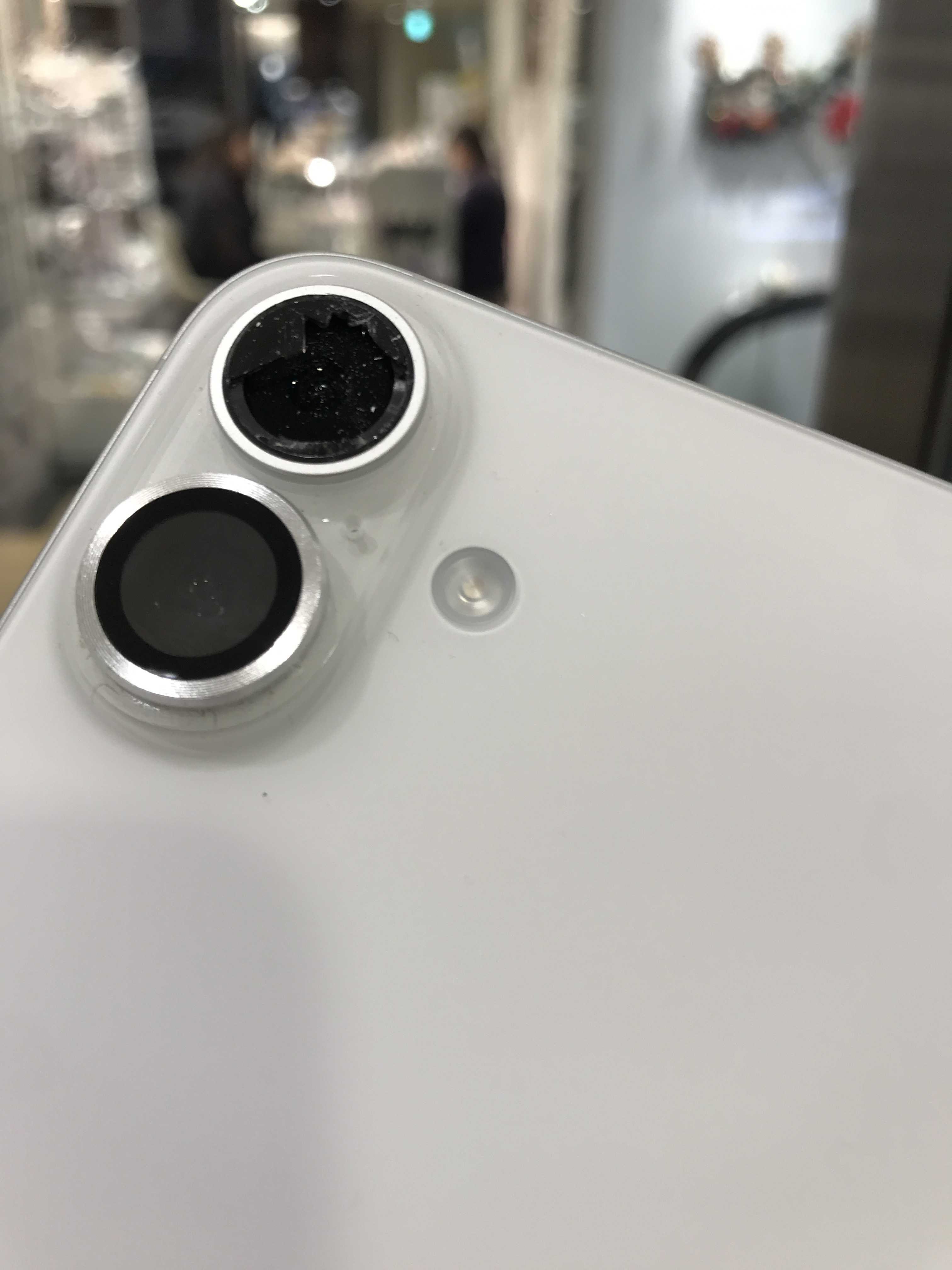このようにカメラレンズが割れてしまった場合、そのまま使用しているとカメラ本体に汚れや傷がついてしまい綺麗なお写真が撮れなくなってしまい交換が必要になる場合がございます。