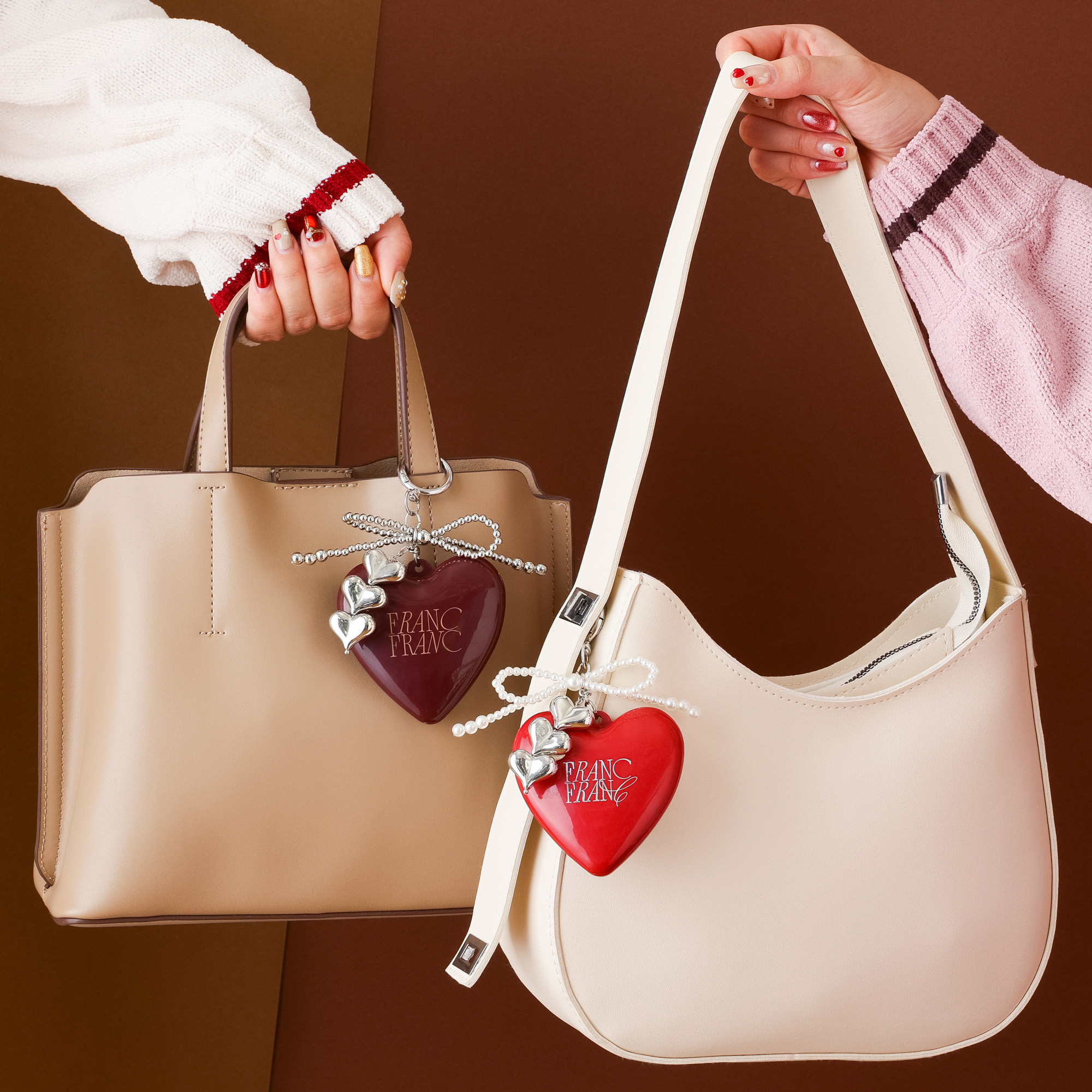 ハートモチーフですが、トレンド感のあるロゴやチャームをあしらったデザインとシックなカラーリングが大人かわいい雰囲気を演出してくれます♥️✨