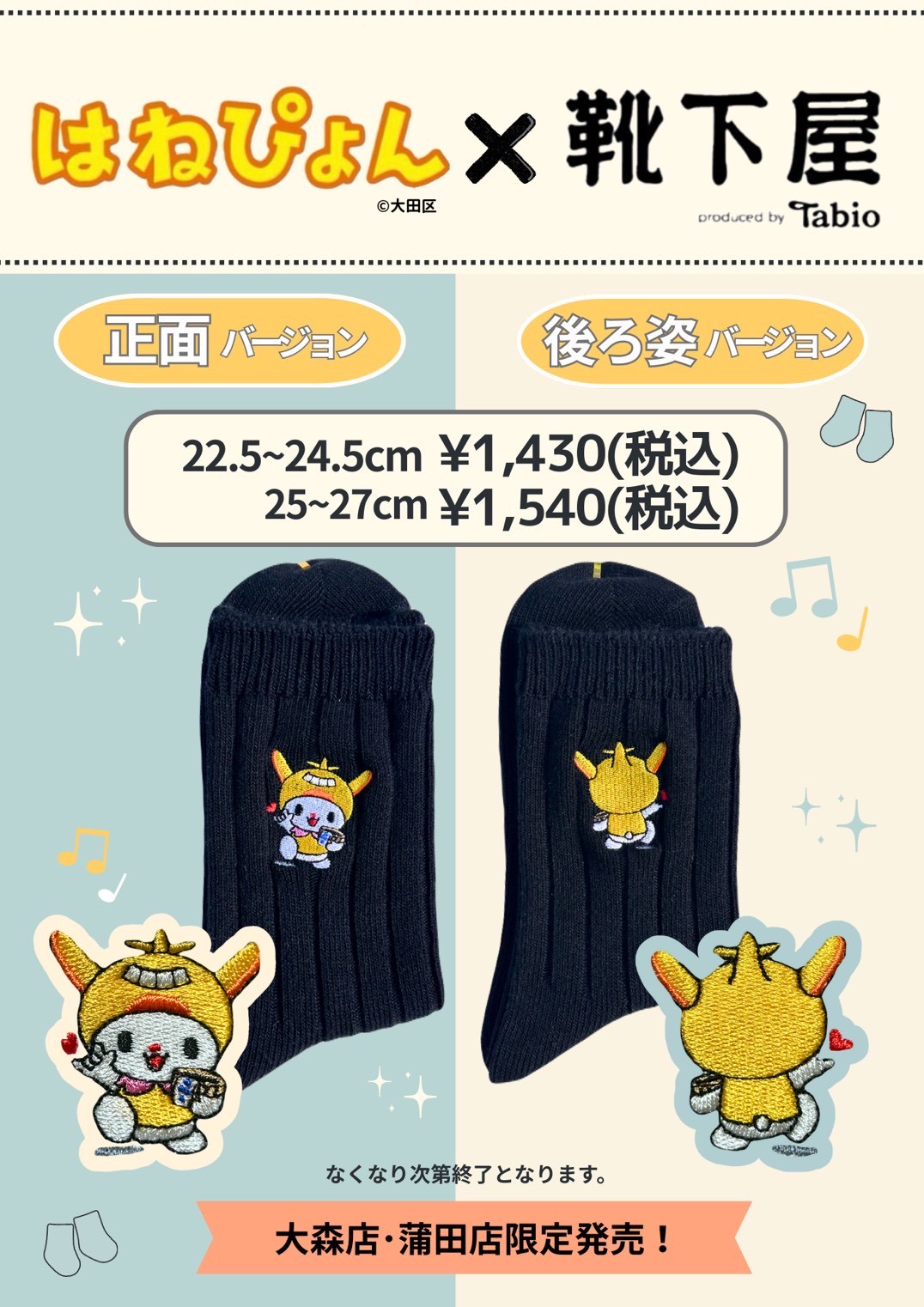 更新日:2026.02.13 靴下屋 03-6424-5275 【はねぴょん×靴下屋】 コラボソックス発売決定‼︎ \3/1(日)発売/ はねぴょん×靴下屋 コラボソックス発売決定! 販売店舗は アトレ大森店さんと東急プラザ蒲田店です◎ ご好評いただいております はねぴょんコラボソックス、 今回ははねぴょんが 手話で ”I love you” と伝えてくれているデザイン❤︎ 発売までお待ちください♪ X この店舗のショップニュース 【はねぴょん×靴下屋】 コラボソックス発売中‼︎ 新ブランド《靴下屋fam》はじまります I.CINNAMOROLL(アイシナモロール)×靴下屋コラボソックス発売中‼︎ 永楽屋×靴下屋 靴下屋のレディース3足1,100円商品が3年ぶりに帰ってきます!