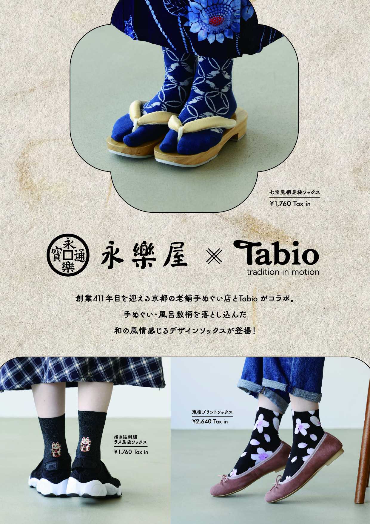 NEW 更新日:2026.02.16 靴下屋 03-6424-5275 永楽屋×靴下屋 永楽屋×Tabio 手ぬぐい、風呂敷の製造販売を行う 江戸初期(1615年)創業の京都の老舗手ぬぐい専門店 永楽屋と靴下屋のコラボソックスが登場! 2026年2月17日(火)より 靴下屋の対象店舗と 公式オンラインストアにて販売します。 ご注意ください ・2月17日(火)は東急プラザ蒲田の休館日の為、 2月18日(水)から発売開始となります。 ・商品の再入荷はございません。 ・商品のお取り置き、お取り寄せはできません。 永楽屋×靴下屋 X この店舗のショップニュース 【はねぴょん×靴下屋】 コラボソックス発売中‼︎ 新ブランド《靴下屋fam》はじまります I.CINNAMOROLL(アイシナモロール)×靴下屋コラボソックス発売中‼︎ 【はねぴょん×靴下屋】 コラボソックス発売決定‼︎ 靴下屋のレディース3足1,100円商品が3年ぶりに帰ってきます!