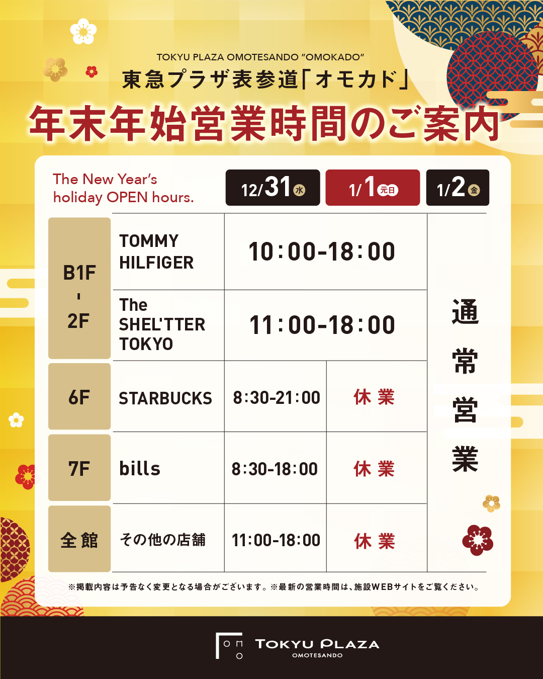 オモカドの年末年始の営業時間につきまして、下記の通りご案内申し上げます。