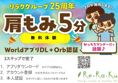 ☆TVで話題☆Orb認証で肩もみ5分無料実施中!