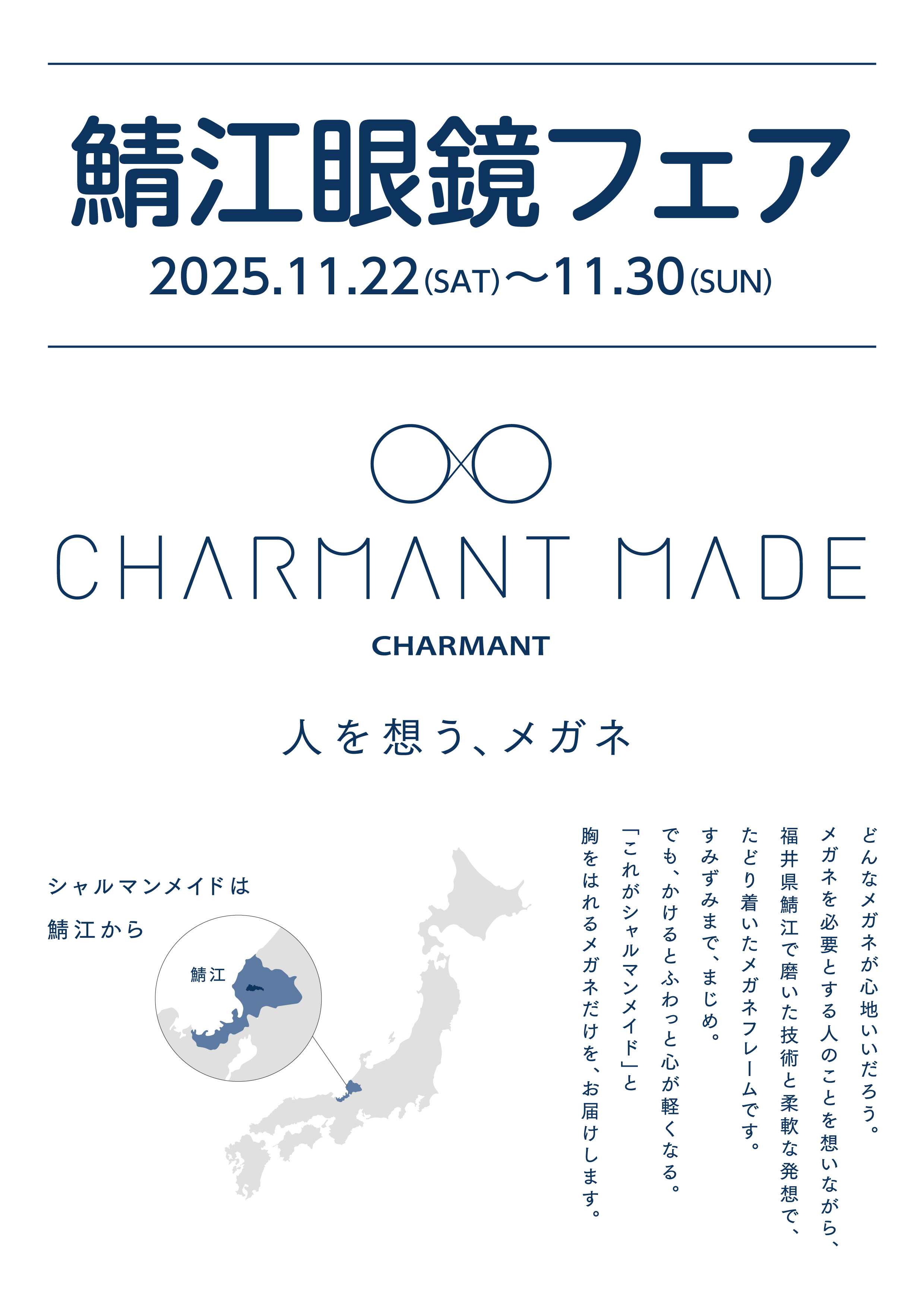 NEW 更新日:2025.11.18 メガネのアイガン 078-643-3966 鯖江眼鏡フェア実施中 掛けた瞬間、感動の軽さ! Made in Japanの上質なかけ心地を体験してください。 ご試着だけでも大歓迎です♪ 皆様のご来店、心よりお待ちしております。 X この店舗のショップニュース 愛眼史上最大級!? 「歳末大感謝SALE」開催! メガネの愛眼dポイントキャンペーン "オーティコン補聴器 ¥1,000(税込)でお試しできます!" "売れてます! ヘッドライトの眩しさを軽減する「光害」対策レンズ" お風呂・サウナにこれ1本【AIGAN FORゆ】 愛眼の「STORM RIDER(ストームライダー)」に新型登場! メガネの愛眼人気商品【スプリングラス】 SamansaMos2×kohoro メガネの愛眼の新ブランド【SHIJA(シージャ)】 メガネの愛眼【ドルソ】