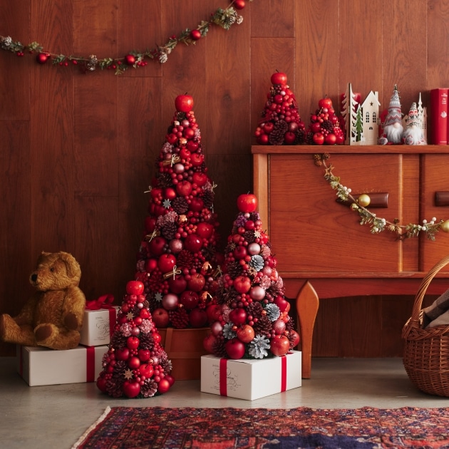 毎年大好評のオリジナルクリスマスツリーが、今年も登場。りんごをメインにシナモンや松ぼっくりなどナチュラルな素材をふんだんに使いながら、華やかさも忘れないデザインに仕上げました。ここでしか手に入らない、特別なツリーです。