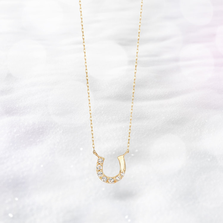 舞い込んできた幸運を受け止め、幸せをもたらしてくれると言われる馬蹄モチーフのダイヤモンドが胸元を飾ります。