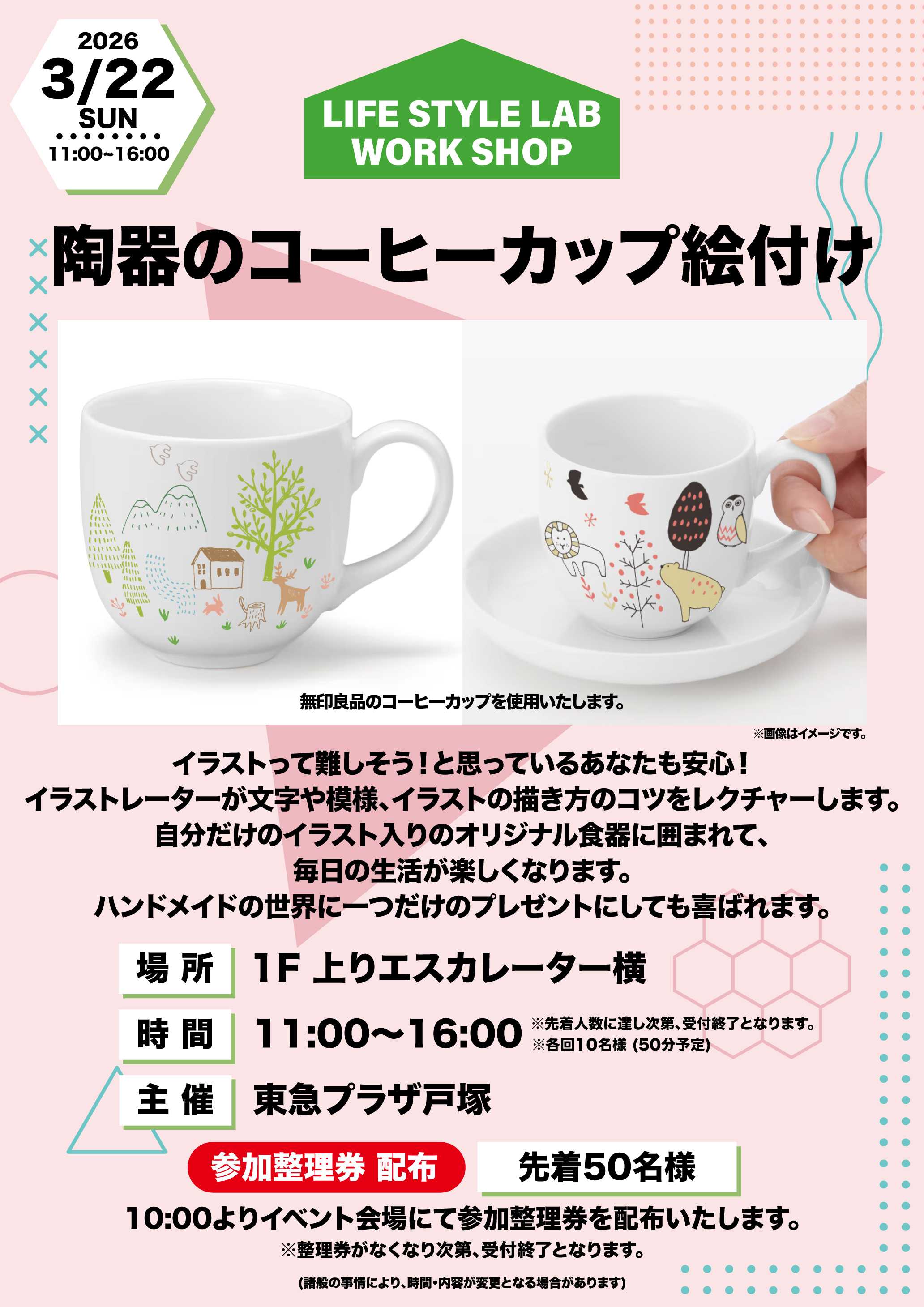 「陶器のコーヒーカップ絵付け」開催のお知らせ